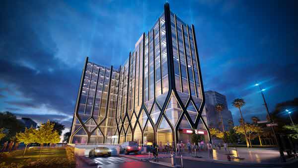 • تصميم المول: نصميم جذاب ومبهر، يتألف المول من 2 مبنى مرتبطين مع بعض في أدوار معينة، ويتكون من دور أرضي + 10 أدوار متكررة.